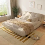 Soft, rounded edges and plush upholstery create a dreamy, floating aesthetic that elevates any modern bedroom.