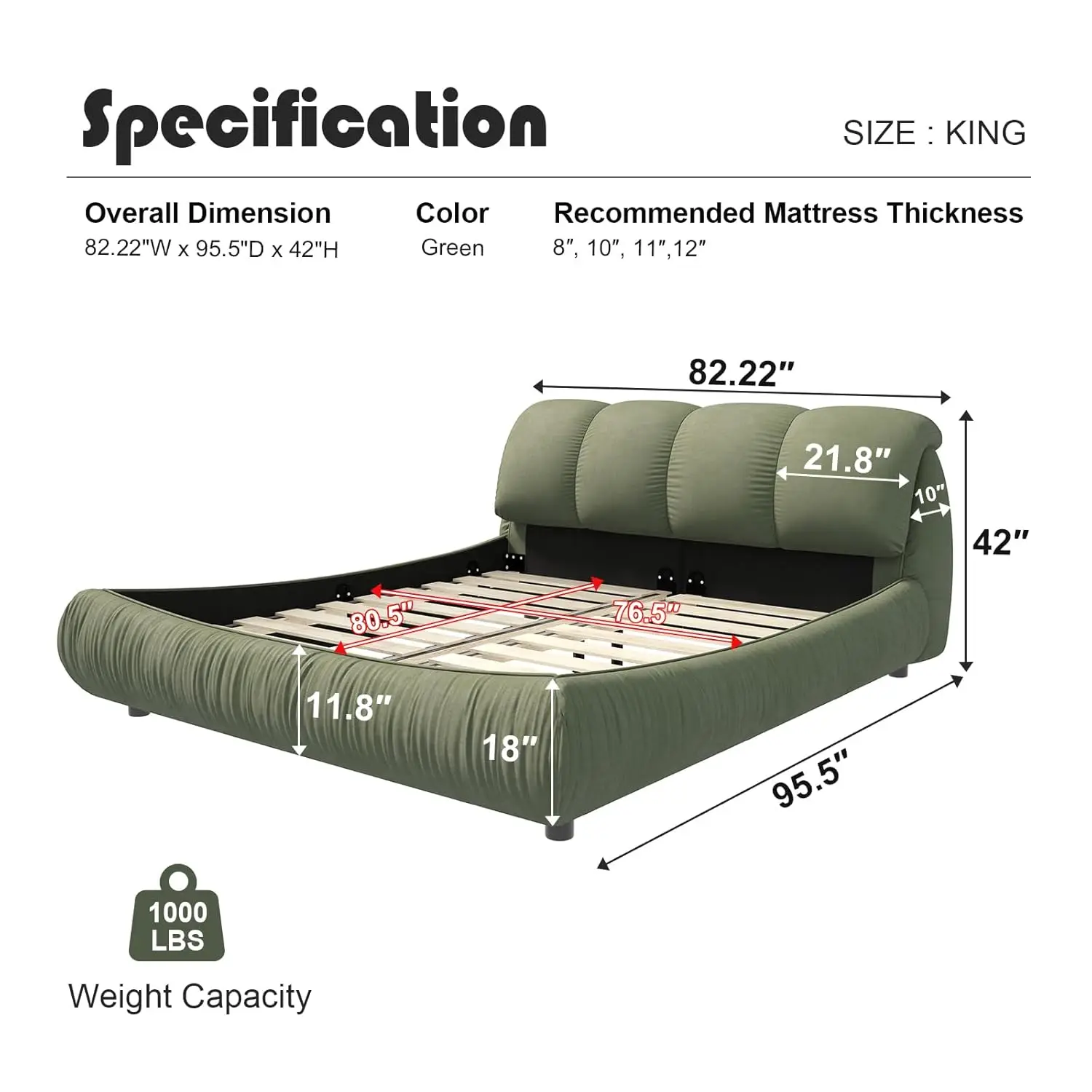 ☁️ King Size Luxury Upholstered Cloud Bed Frame
